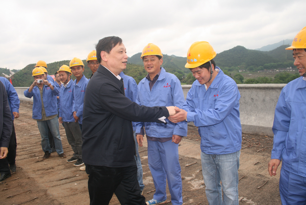 此次視察正值我標(biāo)實(shí)現(xiàn)單幅貫通之際。馬廳長一行經(jīng)全南互通區(qū)、聶徐桃江大橋、1#預(yù)制梁場,抵達(dá)我標(biāo)桃江大橋施工現(xiàn)場。一下車,馬廳長便在我標(biāo)項(xiàng)目經(jīng)理羅權(quán)引領(lǐng)下來到全體在建員工面前,親切地與大家一一握手,并說道:“安徽路橋的同志們辛苦了!”隨后,在聽取了羅權(quán)的簡短匯報(bào)后,馬廳長一行對目前我標(biāo)項(xiàng)目建設(shè)情況有了進(jìn)一步的了解。針對年底建成通車的總體建設(shè)目標(biāo),馬廳長詳細(xì)詢問了后續(xù)的施工計(jì)劃,羅權(quán)表示,在各級領(lǐng)導(dǎo)的關(guān)心幫助下,安徽路橋有信心也有決心按期完成建設(shè)任務(wù)。