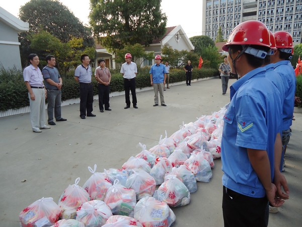 下午5時(shí),寧世明副區(qū)長(zhǎng)一行來到懷寧北路1標(biāo)施工現(xiàn)場(chǎng),向冒著酷暑辛勤工作的廣大一線員工表示親切慰問。寧副區(qū)長(zhǎng)關(guān)切的詢問員工們的生活情況及高溫天氣下的作業(yè)時(shí)間安排,并親手送上綠豆、白糖、純凈水、毛巾、風(fēng)油精等防暑降溫物品。寧副區(qū)長(zhǎng)要求有關(guān)部門全力做好高溫季節(jié)各項(xiàng)工作,并叮囑工程負(fù)責(zé)人,無論工期多緊,也要做好安全生產(chǎn)工作,夏天氣溫高,要合理安排施工時(shí)間,在保證工程質(zhì)量、進(jìn)度的同時(shí),確保工人們勞逸結(jié)合,身體健康。