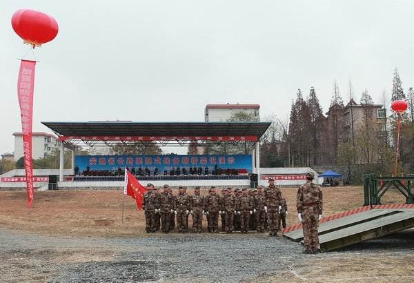 下午,在合肥警備區(qū)教導(dǎo)隊(duì)訓(xùn)練場,紅旗招展,彩球飄揚(yáng)。公司從各單位、各項(xiàng)目抽調(diào)的50名隊(duì)員經(jīng)過為期一周的軍事化訓(xùn)練,精神抖擻、整裝待發(fā)。15:00時(shí),演示活動正式開始。隨著梅廳長一聲令下,隊(duì)員們高舉“安徽省公路工程保障大隊(duì)”旗幟,齊喊口號,跑步進(jìn)入現(xiàn)場,開始架設(shè)。在架設(shè)的同時(shí),進(jìn)行了現(xiàn)場同期聲解說。短短30分鐘內(nèi),隊(duì)員們分工明確,技術(shù)熟練,配合默契。在沒有機(jī)械設(shè)備的情況下,依靠人工肩扛手抬,迅速完成了桁架、橋面板等搭設(shè),將鋼橋推過河,隨后三輛炮車緩緩?fù)ㄟ^,進(jìn)行裝備通載檢驗(yàn)。至此,戰(zhàn)備鋼橋架設(shè)演示圓滿完成。演示活動結(jié)束后,領(lǐng)導(dǎo)們上橋檢閱,親切地接見、慰問了參演隊(duì)員,并合影留戀。