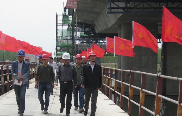 416,安徽省交通建設(shè)工程質(zhì)量監(jiān)督局局長(zhǎng)何光在徐明高速項(xiàng)目辦主任鄭建中的陪同下,深入我公司承建的徐明11標(biāo)懷洪新河二號(hào)特大橋項(xiàng)目,對(duì)安全生產(chǎn)、工程質(zhì)量、施工進(jìn)度工作進(jìn)行督查、指導(dǎo)。