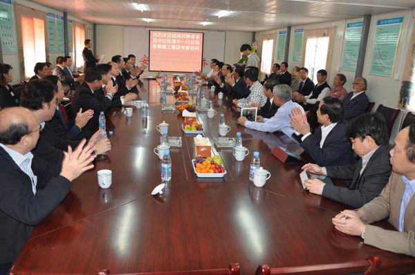 在項(xiàng)目施工現(xiàn)場,市政分公司副經(jīng)理王明禮向考察團(tuán)詳細(xì)介紹了工程情況。當(dāng)考察團(tuán)對該項(xiàng)目僅需300天就能夠完成概算6.06億元的施工任務(wù)時(shí),表現(xiàn)出不可思議和贊嘆之情。在項(xiàng)目會議室,孫學(xué)軍董事長對公司總體情況進(jìn)行了介紹,并逐一介紹了公司在市政、高速、橋隧、海外等各個(gè)領(lǐng)域的精品工程。