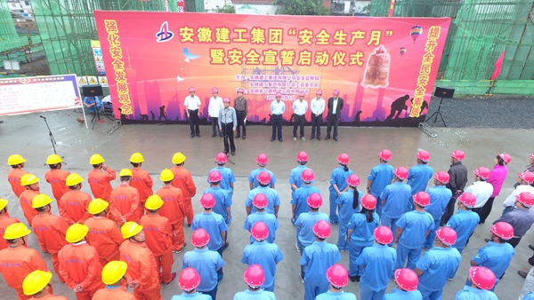 在集團(tuán)公司工會主席徐曉光的帶領(lǐng)下,所屬各單位領(lǐng)導(dǎo)、安全管理人員,郎溪路項目全體管理人員及一線工人約200人舉起右手,鄭重宣誓:“我是一名安徽建工人,我鄭重宣誓,時刻注意安全,遵守安全法規(guī)。履行安全職責(zé),提高安全技能。杜絕三違現(xiàn)象,保證四不傷害。強化紅線意識,促進(jìn)安全發(fā)展。為了家人幸福、企業(yè)發(fā)展,誓做建工‘安全人’”。莊嚴(yán)的誓詞久久回蕩在項目現(xiàn)場,更加堅定了全體建工人“強化紅線意識,促進(jìn)安全發(fā)展”的信心和決心。