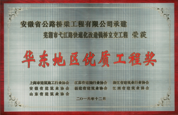 近日,由公司承建的G206公路(南崗-上派段)改建工程4標(biāo)、蕪湖市弋江路快速化改造錢橋立交工程喜獲2016年度“華東地區(qū)優(yōu)質(zhì)工程獎(jiǎng)”。