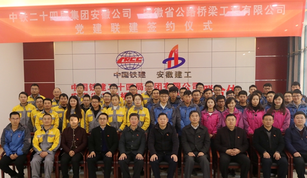 12月12日下午,合肥軌道交通4號線01標(biāo)聯(lián)合體中鐵二十四局安徽公司項(xiàng)目部黨支部和安徽省路橋公司項(xiàng)目黨支部黨建聯(lián)建簽約儀式隆重舉行。安徽路橋公司黨委書記、董事長、總經(jīng)理孫學(xué)軍,紀(jì)委書記林緒坤,副總經(jīng)理任杰,中鐵二十四局集團(tuán)安徽公司黨委書記房明州,黨委副書記、紀(jì)委書記侯衛(wèi)超等領(lǐng)導(dǎo)出席。