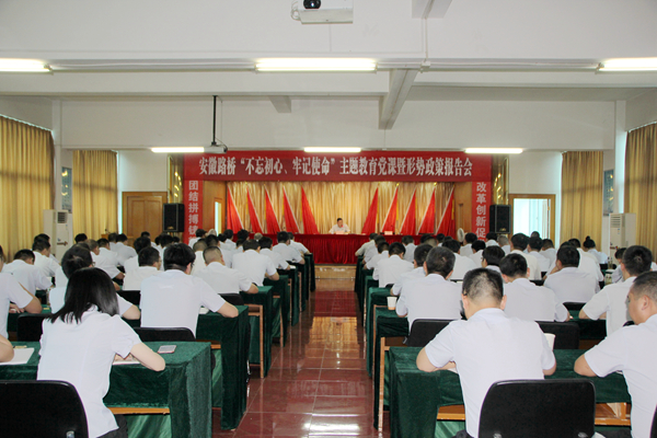 為進一步推深做實“不忘初心、牢記使命”主題教育,按照公司主題教育方案部署,8月2日下午,股份公司副總經(jīng)理、公司黨委書記、董事長孫學軍以“守初心 擔使命 找差距 抓落實——用習近平新時代中國特色社會主義思想指導(dǎo)打造品質(zhì)路橋卓越路橋”為主題,作了一場主題教育黨課暨形勢政策報告會。集團主題教育第四指導(dǎo)組副組長王永來到會指導(dǎo)。公司領(lǐng)導(dǎo),中層干部,在肥項目經(jīng)理、黨支部負責人,機關(guān)全體黨員100余人參加了報告會。