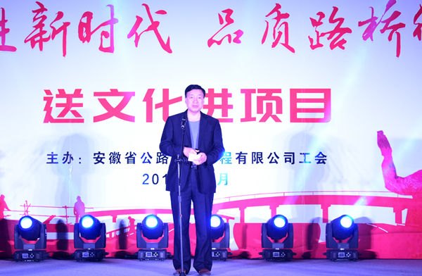 省建設(shè)建材工會(huì)主任程德旺應(yīng)邀致辭,他表示本次送文化進(jìn)項(xiàng)目,把職工喜聞樂見的文化形式送到一線,營(yíng)造健康向上的文化氛圍,增強(qiáng)了企業(yè)的凝聚力和向心力。希望省路橋公司廣大建設(shè)者再接再厲,把干事創(chuàng)業(yè)的熱情貫穿企業(yè)高質(zhì)量發(fā)展全過程,為安徽省建筑業(yè)的發(fā)展作出更大貢獻(xiàn)。