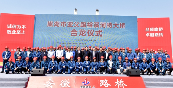 4月26日,由公司承建的皖中新地標(biāo)巢湖亞父路裕溪河特大橋經(jīng)過(guò)2年多的建設(shè)順利合龍。巢湖市副市長(zhǎng)張明權(quán)參加合龍儀式并宣布大橋正式合龍,股份公司黨委副書(shū)記、副總經(jīng)理孫學(xué)軍,巢湖市重點(diǎn)工程建設(shè)管理中心主任曾瑾、居巢經(jīng)濟(jì)開(kāi)發(fā)區(qū)管委會(huì)主任王慶林、巢湖市地方海事處處長(zhǎng) 沐小平、合肥市規(guī)劃設(shè)計(jì)研究院院長(zhǎng)黃從俊,公司領(lǐng)導(dǎo)錢(qián)申春、任杰、杜海峰出席合龍儀式。