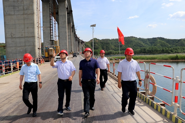 錢總深入施工現(xiàn)場,實(shí)地察看了項(xiàng)目工程進(jìn)展、安全質(zhì)量管控、現(xiàn)場施工組織等情況,詳細(xì)詢問了主橋合攏段工期節(jié)點(diǎn)計(jì)劃并就進(jìn)一步加快項(xiàng)目建設(shè)進(jìn)度進(jìn)行了部署安排。在項(xiàng)目南引橋,錢總詢問了安全管控手段、進(jìn)度安排計(jì)劃、質(zhì)量保證措施。他強(qiáng)調(diào),黃河特大橋項(xiàng)目位于小浪底庫區(qū)內(nèi),項(xiàng)目部要提高站位,進(jìn)一步做好綠色文明施工,把項(xiàng)目建設(shè)對黃河生態(tài)環(huán)境的影響降到最低,彰顯國企擔(dān)當(dāng)。
