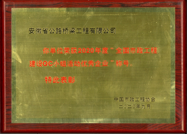近日,中國市政工程協(xié)會組織召開2020年度全國市政工程建設優(yōu)秀QC小組成果發(fā)布會。大會總結(jié)交流了2019年市政工程建設QC小組活動經(jīng)驗,評選表彰了QC小組活動優(yōu)秀企業(yè)。公司榮獲全國市政工程建設QC小組活動優(yōu)秀企業(yè)。
