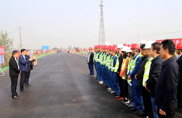 10月30日上午,歷經(jīng)七個(gè)月的奮戰(zhàn),淮北G237項(xiàng)目路面工程全線貫通?;幢笔薪煌ň贮h組書記、局長(zhǎng)韓海林,副局長(zhǎng)苗中治,淮北市公路管理服務(wù)中心黨委書記、主任楊國(guó)棟,公司黨委副書記、總經(jīng)理錢申春,黨委委員、副總經(jīng)理杜海峰到場(chǎng)祝賀,并看望慰問(wèn)全體參建人員。