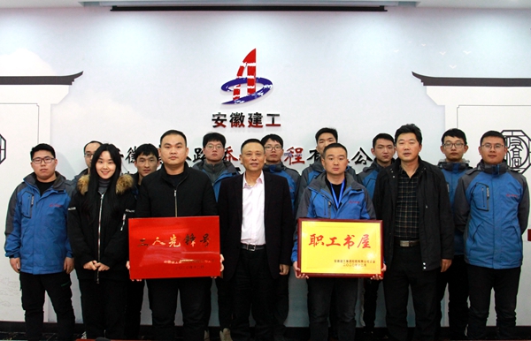 3月19日下午,集團工會副主席李世龍到徽州大道項目驗收“工人先鋒號”和“職工書屋”創(chuàng)建工作,并進行現(xiàn)場授牌。