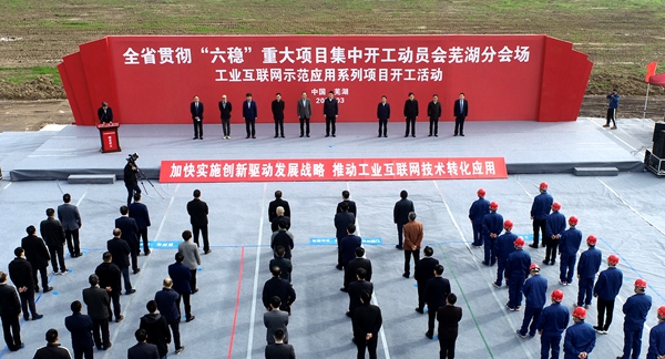 全省貫徹“六穩(wěn)”重大項目開工動員會(蕪湖分會場)在安徽建工鋼結(jié)構(gòu)智能制造產(chǎn)業(yè)化基地舉行