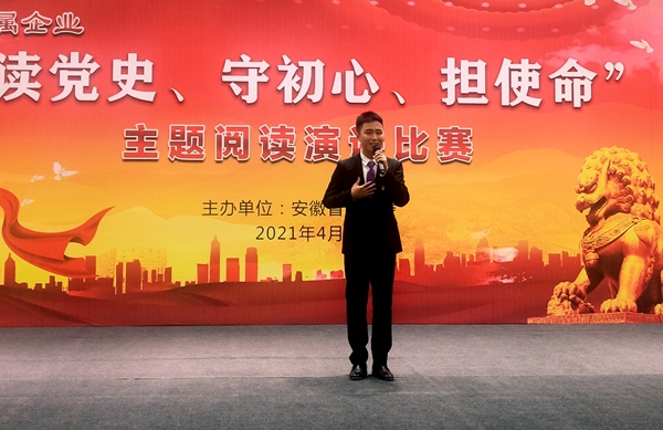 公司員工榮獲省屬企業(yè)“讀黨史、守初心、擔使命”主題閱讀演講第二名 發(fā)布時間:2021年04月27日 來源:黨委辦公室 發(fā)布人: 作者:文/綜合 圖/劉悅 瀏覽:4026次 4月26日下午,省國資委舉辦省屬企業(yè)“讀黨史、守初心、擔使命”主題閱讀演講比賽決賽,公司員工沙小佳同志榮獲第二名。
