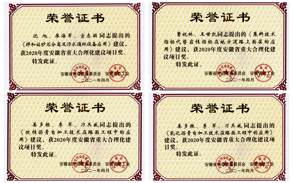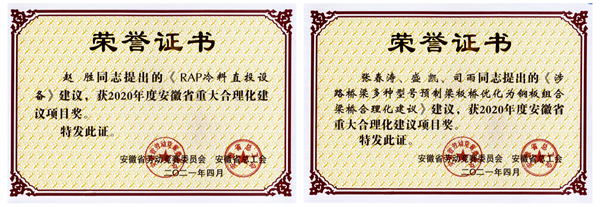 公司10項(xiàng)合理化建議榮獲省重大合理化建議項(xiàng)目獎