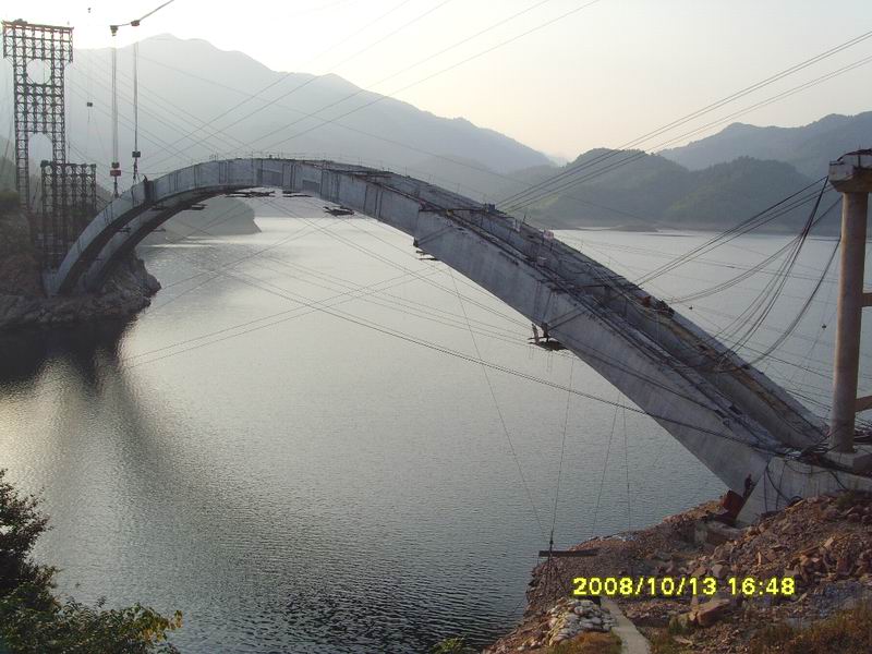 金桃大橋自2008年8月8日復(fù)工以來得到省交通廳領(lǐng)導(dǎo)高度重視,在公司領(lǐng)導(dǎo)的精心策劃,統(tǒng)籌安排下,項(xiàng)目部克服種種困難重新組織施工隊(duì)伍并投入到大規(guī)模地生產(chǎn)施工中,掀起一場(chǎng)大干熱潮,目前工程進(jìn)展一切順利。2008年10月16日金桃大橋梅山跨箱拱已全部拼裝完成并順利合攏,拱上工程立柱、系梁、蓋梁安裝施工也在有序進(jìn)行。桃?guī)X跨36片箱拱已預(yù)制完成22片。項(xiàng)目部全體員工都鼓足干勁力爭(zhēng)在4月中旬完成所有預(yù)制構(gòu)件,六月中旬爭(zhēng)取完成桃?guī)X跨箱拱的拼裝使其順利合攏。
