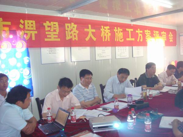 6月1日,六安市淠望路大橋索塔下橫梁、索塔、主橋邊跨及引橋支架現(xiàn)澆施工方案評審會在項目部會議室召開。會議由公司的總工程師彭申凱主持,特邀了安徽省公路局總工朱新實、安徽省交通規(guī)劃設(shè)計研究院橋梁分院院長王勝斌、副院長席進、合肥工業(yè)大學(xué)教授方詩圣、安徽省交通職業(yè)技術(shù)學(xué)院土木系主任王豐勝等知名橋梁專家。六安市建委、質(zhì)監(jiān)站、安檢站、淠望路大橋監(jiān)理部、監(jiān)控等單位相關(guān)代表也參加了會議。