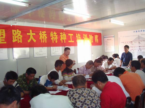 為進一步加大項目部安全生產(chǎn)培訓教育力度,切實提高特種作業(yè)人員的安全素質(zhì)和安全操作技能水平,確保在崗特種作業(yè)人員100%持證上崗。淠望路大橋項目部在公司人力資源部的指導和幫助下,以“安全生產(chǎn)月活動”為契機,于6月3日至4日,組織了一期特種作業(yè)人員上崗培訓和復審培訓再教育活動。邀請了省安監(jiān)局特種作業(yè)培訓中心的老師直接來到一線,對項目部及各下屬作業(yè)隊的電工、焊工、起重工等特種作業(yè)人員進行安全技術(shù)培訓,培訓的主要內(nèi)容有特種作業(yè)人員安全生產(chǎn)法律法規(guī)知識、安全生產(chǎn)管理知識、安全技術(shù)理論知識等。