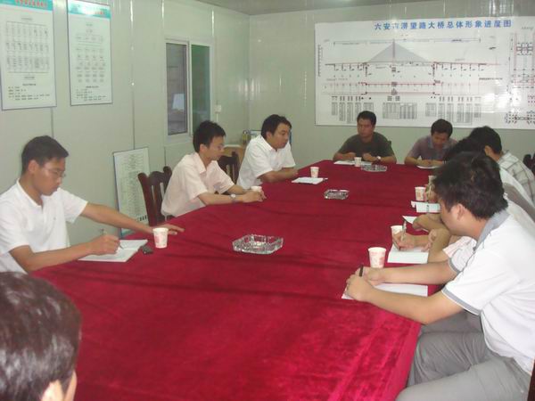 針對北岸引橋箱梁砼澆筑后,對成型構(gòu)件出現(xiàn)的問題,由全體技術(shù)人員先找原因討論解決辦法,隨后,崔總對所提出問題逐一進(jìn)行了原因分析,提出了解決的辦法。大家感到這種有針對性地培訓(xùn),接受的快,收效很大。最后,項目經(jīng)理江仲明要求在當(dāng)前工程沖刺關(guān)鍵時刻,所有技術(shù)人員要切實增強質(zhì)量意識,強化質(zhì)量工作責(zé)任,加強質(zhì)量考核工作,并強調(diào)各部門、各作業(yè)隊要對檢查出的質(zhì)量問題嚴(yán)肅處理,認(rèn)真落實整改。
