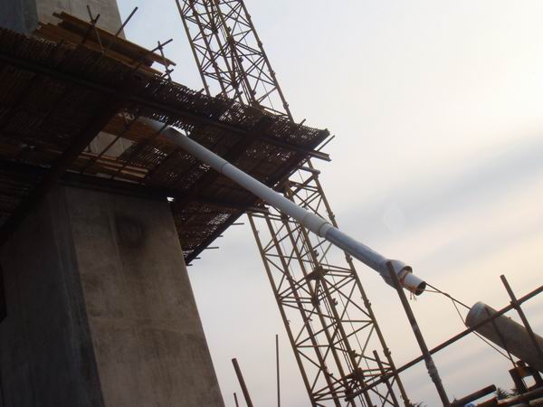 該斜拉索長(zhǎng)19.0米,重1噸,由43根鋼絞線(xiàn)組成。據(jù)悉,六安淠望路大橋主塔共有斜拉索60根,由高強(qiáng)度、低松馳的光面鋼絞線(xiàn)組成。單根鋼絞線(xiàn)直徑為15.2mm,標(biāo)準(zhǔn)強(qiáng)度fpk=11860Mpa。斜拉索采用三層防護(hù):第一層涂油脂或石蠟,第二層為單根鋼絞線(xiàn)熱擠單層PE層,第三層整體索外包HDPE雙層護(hù)套。主塔的左、右幅索塔各布置了15對(duì)斜拉索,最大索長(zhǎng)123.0米,重12噸,由73根鋼絞線(xiàn)組成。 整個(gè)斜拉索施工計(jì)劃到2010年4月份完成。