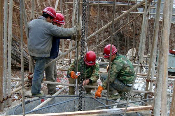 本次通過驗收的4號主體橋墩挖孔樁工程是巖子腳特大橋第一個橋墩工程。項目經理劉曉晗和項目總工胡學祥高度重視,考慮到人工挖孔操作安全的重要性和本次工程涉及到爆破作業(yè),在開挖之前,劉經理和胡總工特別為此召開挖孔樁專項安全會議,對施工人員進行全面的安全技術交底。要求項目部現場技術人員必須認真學習和熟悉圖紙,安全人員必須每天到現場檢查安全事項,要求施工隊負責人必須做到按操作規(guī)程施工;同時作出規(guī)定,任何一個環(huán)節(jié)不符合操作規(guī)程,立刻停工整頓并處罰相關人員。在此基礎上,4號橋墩挖孔樁工程不僅完成速度快,而且質量和安全得到了充分的保證。