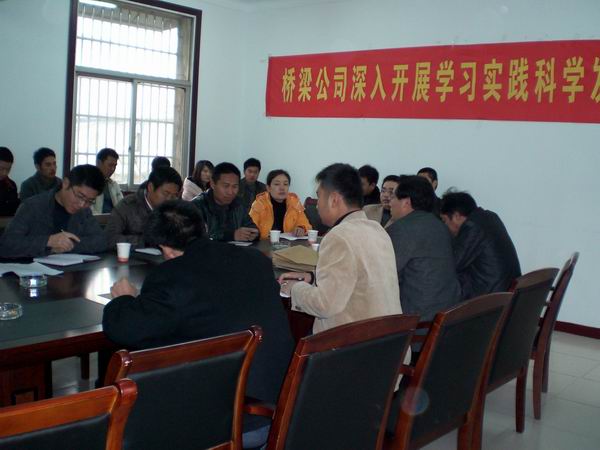 緊接著,公司副總經(jīng)理、橋梁公司總經(jīng)理孫學軍要求:第一、所有黨員、職代會代表及項目部要及時傳達五屆二次職代會會議精神,讓項目部所有員工明確公司2010年工作目標,并為之奮斗;第二、要抓住機遇,承建一些有高技術(shù)含量的養(yǎng)護工程,穩(wěn)定橋梁公司勞務隊伍;第三、轉(zhuǎn)變黨建工作方式,著重于交流溝通方式上的轉(zhuǎn)變,創(chuàng)造性的開展黨建工作,要加強理論學習,做到理論與實踐相結(jié)合。最后孫總對橋梁公司的發(fā)展方向,發(fā)展目標和發(fā)展思路同與會黨員作了交流。