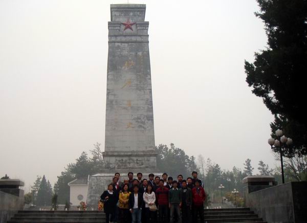 金寨是紅軍的故鄉(xiāng),將軍的搖籃。金寨縣革命烈士陵園是融博物館、紀念堂、革命烈士紀念塔、紅軍墓為一體的大型陵園,是全國重點烈士建筑物保護單位。清明之際,烈士陵園莊嚴肅穆、松柏凝翠、楊柳吐綠,在料峭的春風中,大家向革命烈士紀念塔敬獻了花籃,并肅立默哀,向烈士們致以崇高的敬意,表達深切的懷念。祭掃結束后,大家還參觀了革命博物館、烈士紀念堂。一幅幅陳舊的老照片,一件件革命烈士遺物,無聲地述說著烈士們當年艱苦樸素的生活作風和寧死不屈的愛國精神。