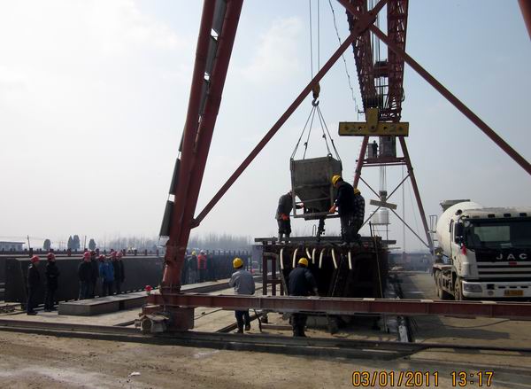 為確保此次箱梁澆筑過程萬無一失,項目部精心制定澆筑施工方案,提前做好各項準(zhǔn)備工作。項目部對澆筑設(shè)備及混凝土進(jìn)行反復(fù)檢驗,制定應(yīng)急預(yù)案,要求全體人員在澆筑過程中樹立高度的責(zé)任心,保證整個澆筑過程安全、有序。隨著砼灌車進(jìn)入梁場,試吊、起吊、前移、就位、澆筑,一串協(xié)調(diào)而又連貫的運(yùn)作之后,第一片箱梁成功澆筑。