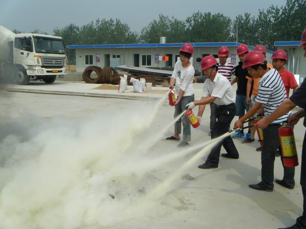 鳳陽縣消防支隊派出業(yè)務(wù)骨干進行培訓(xùn)和現(xiàn)場指導(dǎo)演練,重點對施工現(xiàn)場安全的隱患點做了詳細分析,對消防滅火器材的種類、型號、使用方法進行了講解和現(xiàn)場指導(dǎo)。本次消防演練由技術(shù)指揮組、搶救組組成。參加培訓(xùn)人員在掌握基本常識基礎(chǔ)上對施工現(xiàn)場所配備的干粉滅火器進行實際操作,進行滅火演練。