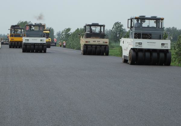 在項目經(jīng)理王小杰的精心組織安排下,我部人員、機械、材料均準備就緒,充分具備瀝青試驗段攤鋪條件。7月3日上午10時8分,第一車瀝青混合料從我周六路面03標后場拌和站發(fā)出。 10時58分,瀝青下面層試驗段攤鋪正式啟動,下午13時20分攤鋪結束。此次試驗段攤鋪起訖樁號為:K137+880~K138+080(左幅),長度220m,結構層厚