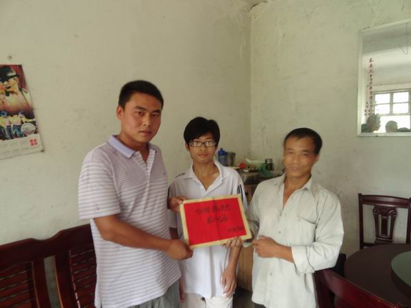 據(jù)了解,鄺土華同學(xué)今年以498分的成績(jī)被東華理工大學(xué)核工程與技術(shù)專(zhuān)業(yè)錄取,但昂貴的學(xué)費(fèi)對(duì)于這樣一個(gè)母親臥病在床、僅靠一畝田地維持生計(jì)的貧困家庭來(lái)說(shuō),是不小的負(fù)擔(dān)。我部經(jīng)理羅權(quán)在了解相關(guān)情況后,積極組織參建員工捐款,并隨同全南縣交通局局長(zhǎng)童文平、J2高駐辦高級(jí)駐地張金杰親自前往家中慰問(wèn)。
