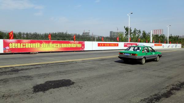 為了此次交口的順利通車,項目部做了充分的準備。一、南二環(huán)上跨翡翠路橋墩柱已經(jīng)完成,翡翠路南北方向路面的瀝青已攤鋪完成,具備了通車條件。二、積極與政務區(qū)交警大隊聯(lián)系,做好放行前期交口布置、交通警示裝置的設(shè)立及放行后交通線路走向的確定事宜;此外,為了保證施工的封閉性,項目部迅速組織人員將翡翠路與南二環(huán)路交口兩邊的圍擋扎好,保證了車輛通過的安全性。三、為了響應市政府及市重點局號召,項目部做好一系列安全文明工作,如在圍擋兩邊張貼懸掛了大量的警示標語及宣傳條幅,不僅對來往車輛及行人起到一定的警示作用,同時也進一步加強了公司品牌形象的宣傳。四、項目部已于9月18日將翡翠路交口放行的通告發(fā)放到附近居民區(qū)及相關(guān)單位,保證交口放行信息傳遞的及時性。