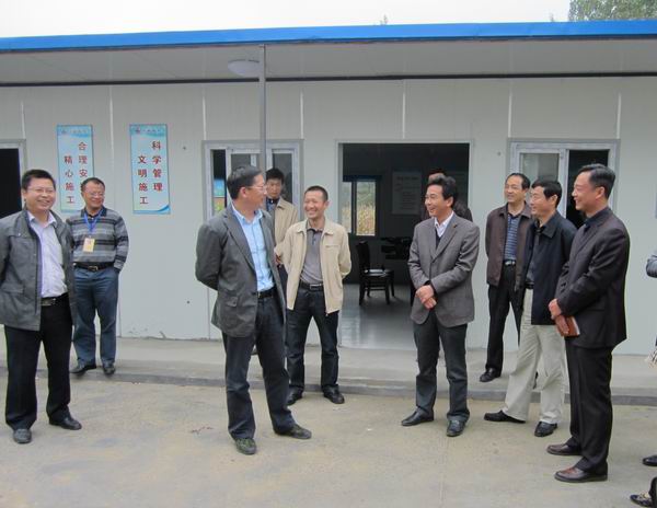 王傳鵬一行先來(lái)到我標(biāo)段正在建設(shè)中的預(yù)制場(chǎng)拌合站,并聽取了項(xiàng)目經(jīng)理杜海峰的匯報(bào)。接著來(lái)到我標(biāo)段項(xiàng)目部,調(diào)研項(xiàng)目駐地建設(shè)情況,就項(xiàng)目駐地建設(shè)作出具體指導(dǎo)。他要求項(xiàng)目駐地的實(shí)驗(yàn)室及相關(guān)配套設(shè)施要盡早完備,并指出在地方事務(wù)上,出現(xiàn)問(wèn)題要及時(shí)與縣指和鄉(xiāng)鎮(zhèn)進(jìn)行溝通,協(xié)調(diào)解決。同時(shí),他要求縣指繼續(xù)做好各項(xiàng)協(xié)調(diào)工作,確保蚌固路改造工程于10月底順利施工。