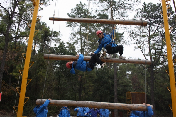 在培訓基地,學員被隨機分為三組,通過民主討論選出各自的隊長、隊名、隊歌和口號。在隨后的拓展培訓中,三組隊員依靠團結協(xié)作、頑強拼搏、毫不畏懼的精神順利完成了“背摔、斷橋、天梯、空中單杠、求生墻”等挑戰(zhàn)性項目,通過這些項目的挑戰(zhàn),經過帶訓老師針對性的啟發(fā)和指導,使廣大學員加深了對團隊協(xié)作、互助互信的理解,達到了挑戰(zhàn)自我、熔煉團隊、提升溝通與合作的目的。