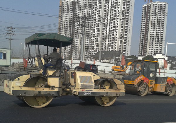 隨著第一輛運(yùn)料車(chē)進(jìn)入施工現(xiàn)場(chǎng),攤鋪機(jī)開(kāi)始啟動(dòng),倒料、攤鋪、碾壓一條龍作業(yè),路面很快成形。為加快工程進(jìn)度,現(xiàn)場(chǎng)采用兩臺(tái)攤鋪機(jī)同時(shí)作業(yè)。此次瀝青砼攤鋪長(zhǎng)度為1.2公里,懷寧北路路面瀝青攤鋪分三層,當(dāng)天鋪設(shè)的是下面層粗礫石。