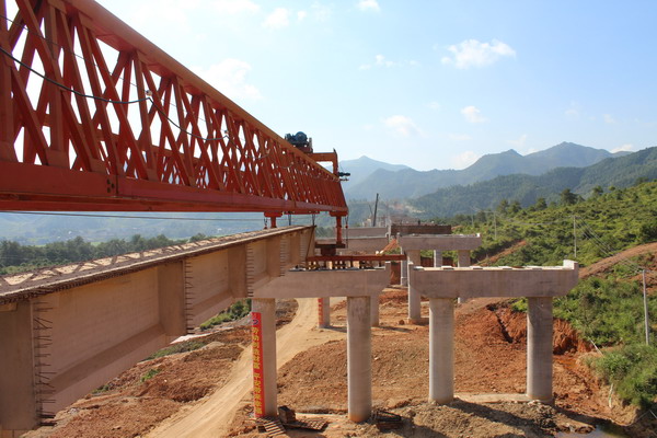 昌寧高速C5標(biāo)完成龍坊高架第一片40米T梁架設(shè) 發(fā)布時(shí)間:2014年09月18日 來源:昌寧高速C5標(biāo) 發(fā)布人: 作者:王振堂 瀏覽:2733次 9月18日上午9時(shí)18分,昌寧高速公路C5標(biāo)龍坊高架第一片40米T梁順利架設(shè)成功,標(biāo)志著作為全線控制性工程的龍坊高架橋進(jìn)入了上部施工階段,極大地提振了項(xiàng)目部全體員工和參建隊(duì)伍的戰(zhàn)斗精神。