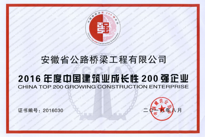 中國建筑業(yè)成長性200強(qiáng)企業(yè)
